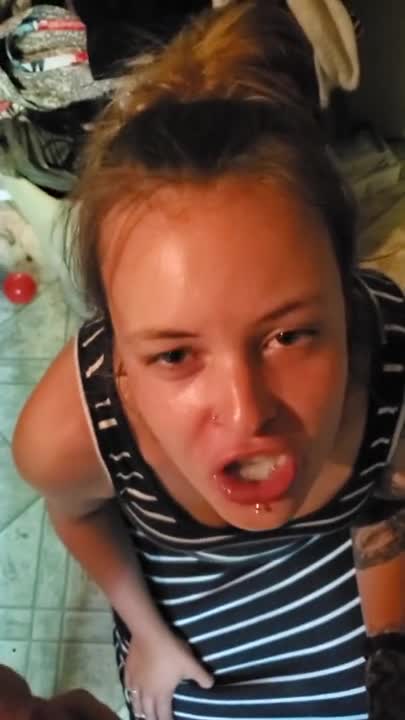 Молодая шлюшка делает минет получая за это полный рот спермы который глотает.