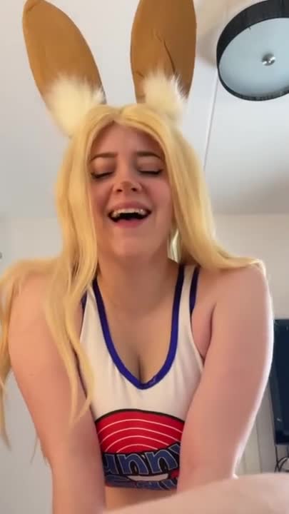 малышка в костюме зайки красиво насаживается на стоячий болт парня не снимая трусов с финалом в ее сладкую горячую киску