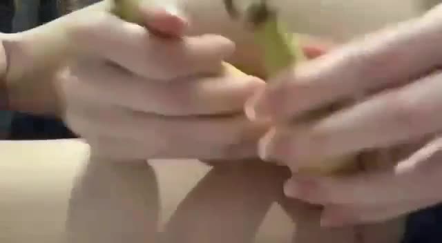 Девушка использует два банана для удовлетворения себя в обе дырочки