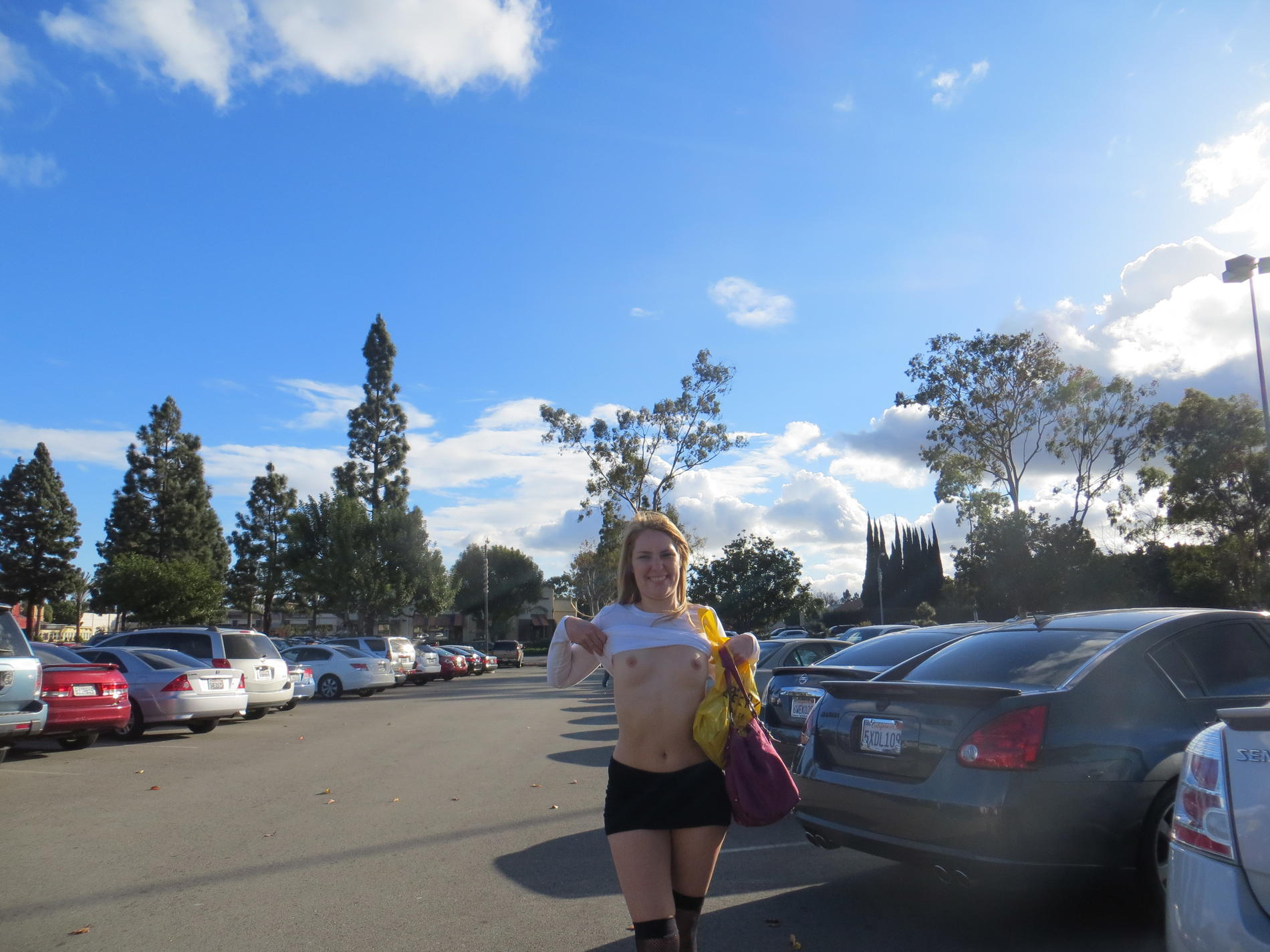 Миловидная девушка с удовольствием показывает свои прелести в публичных местах.