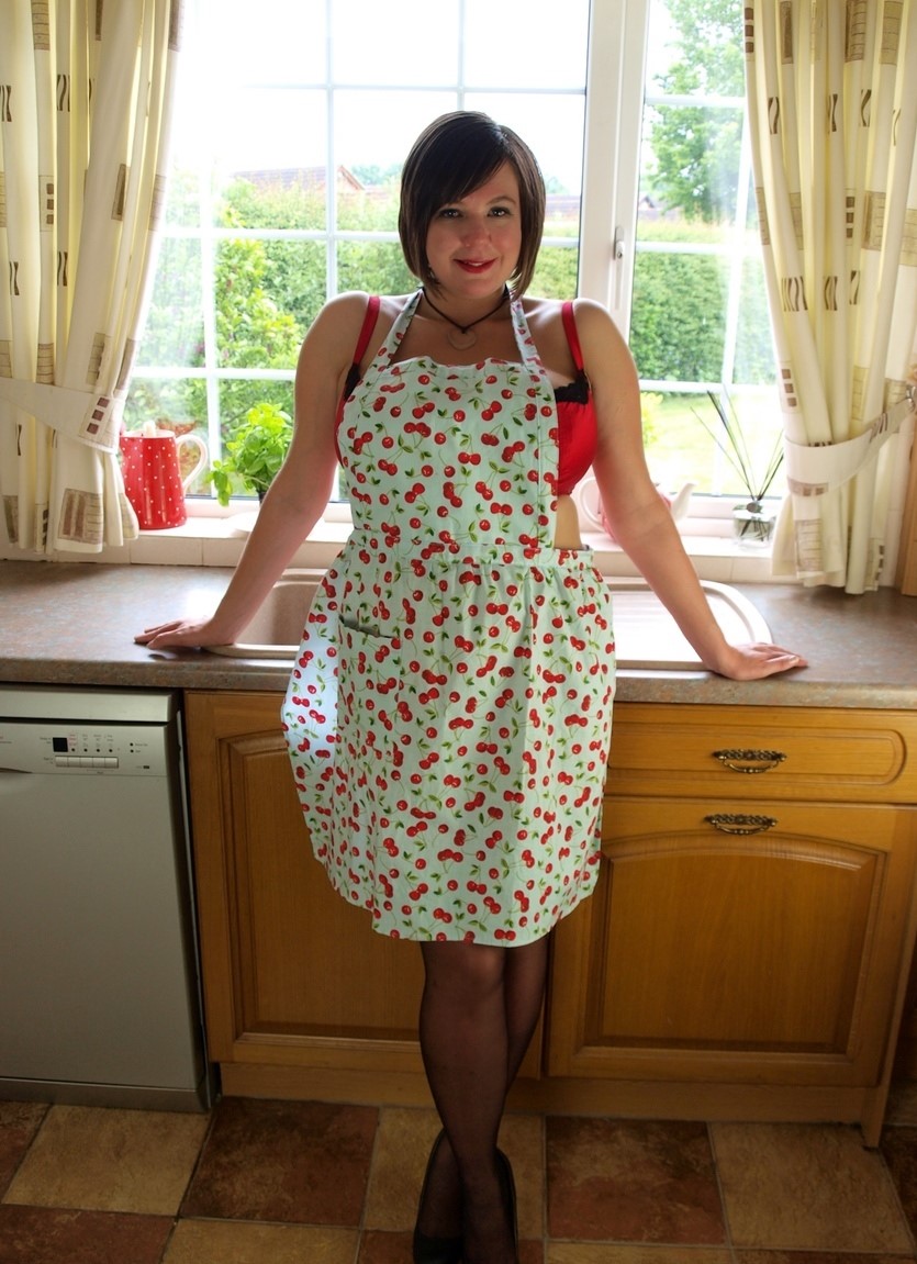 Фартук при таком красивом бельевом параде больно простецкий и точно лишний.
