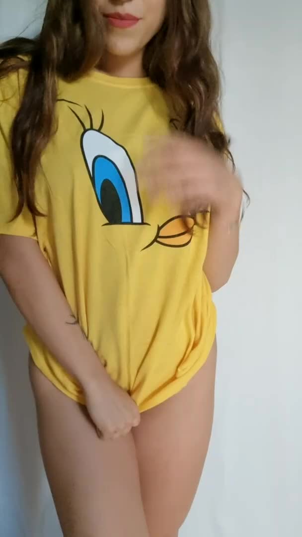 показала что у неё под футболкой