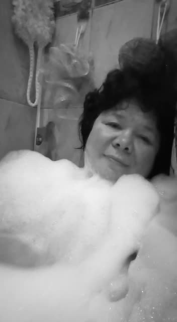 Полоскает свои тити в пенке
