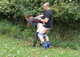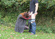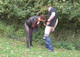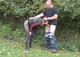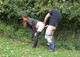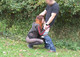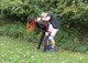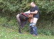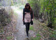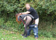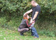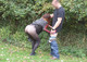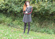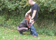 Шлюха в черных колготках на природе делает минет, а потом берет в анал