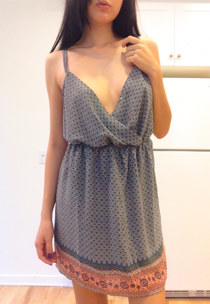 брюнеточка красуется в сарафане демонстрируя свою аккуратную фигурку