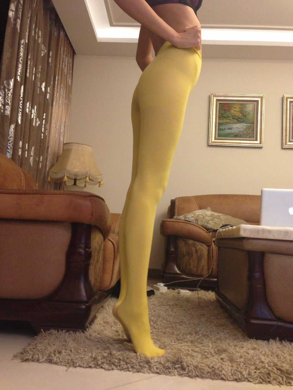 Под жёлтыми колготками шикарные дырочки спрятались.