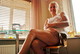 Пожилая блондинка с еще вспыльчивым темпераментом показывает свое красивое тело