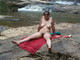 Раиска отдыхает на берегу горной реки , место безлюдное и она загорает голой
