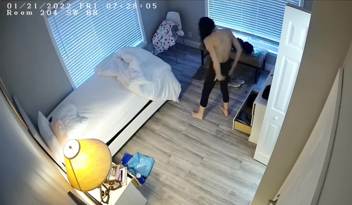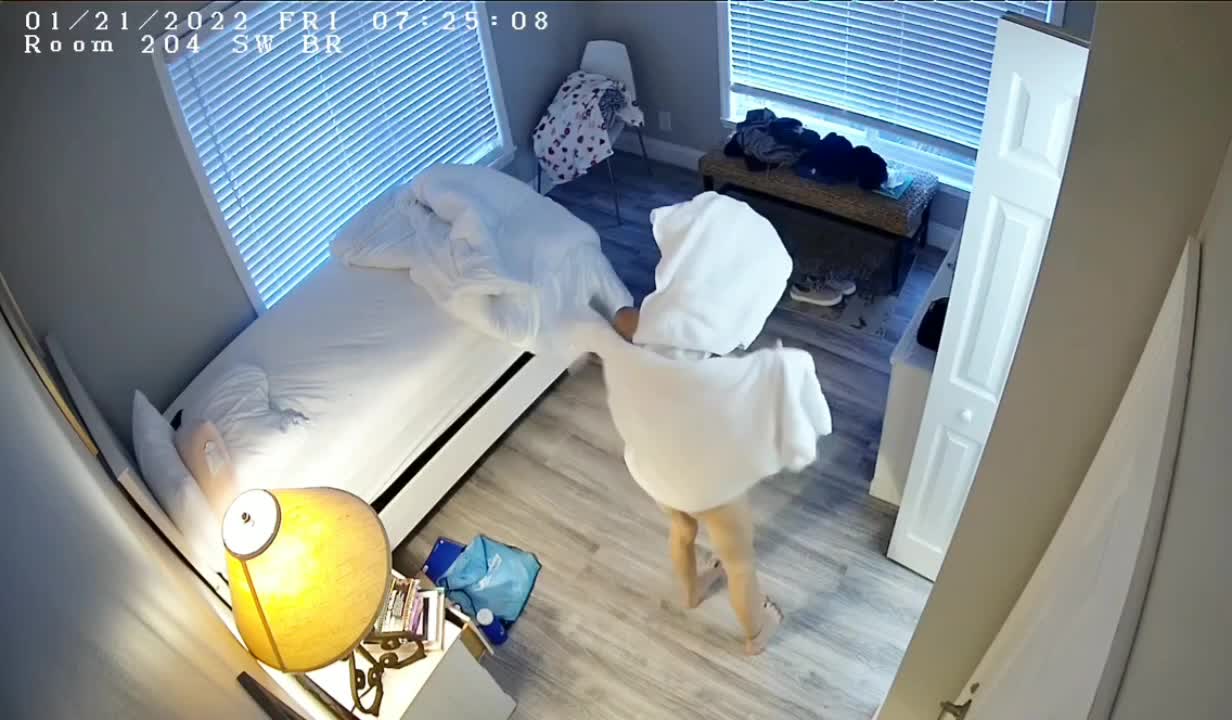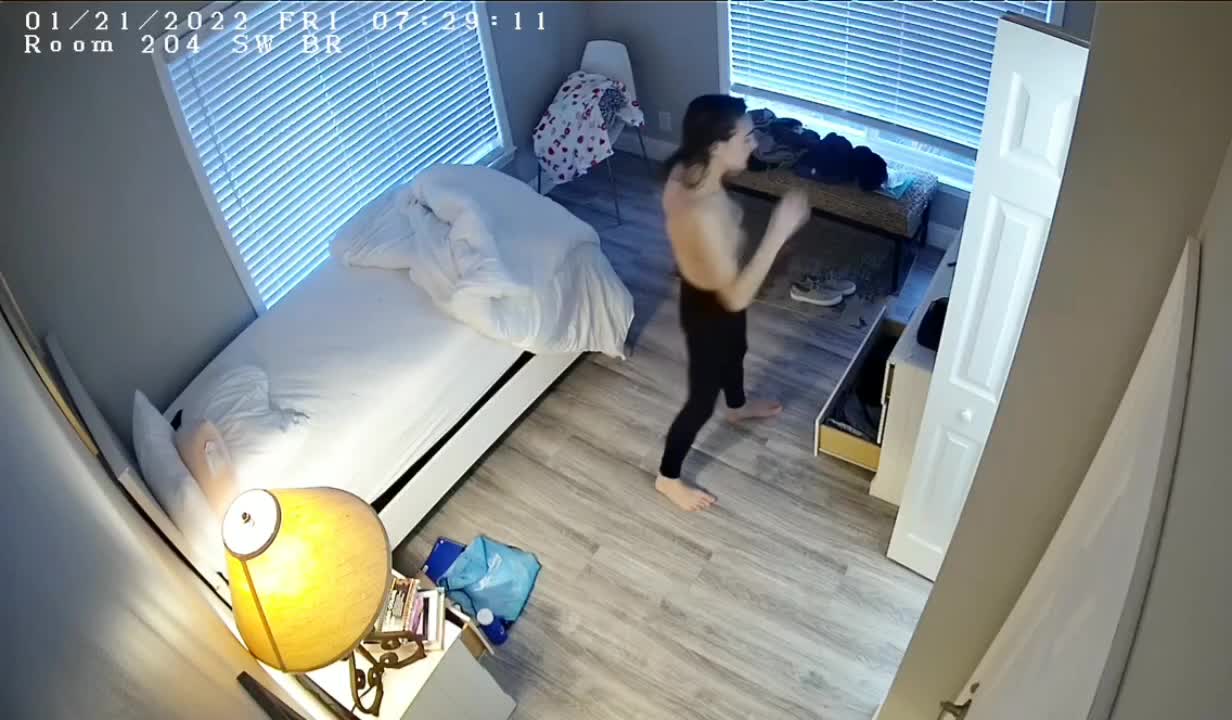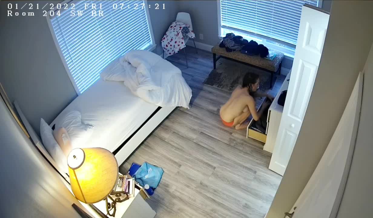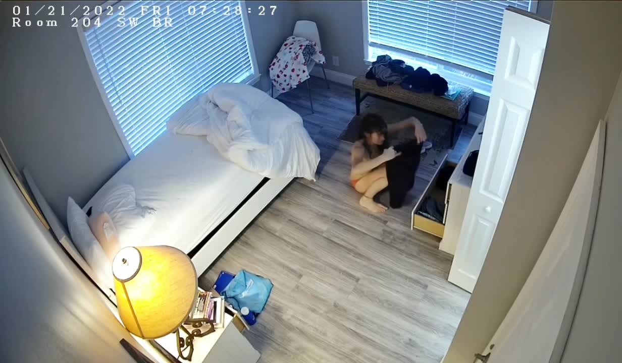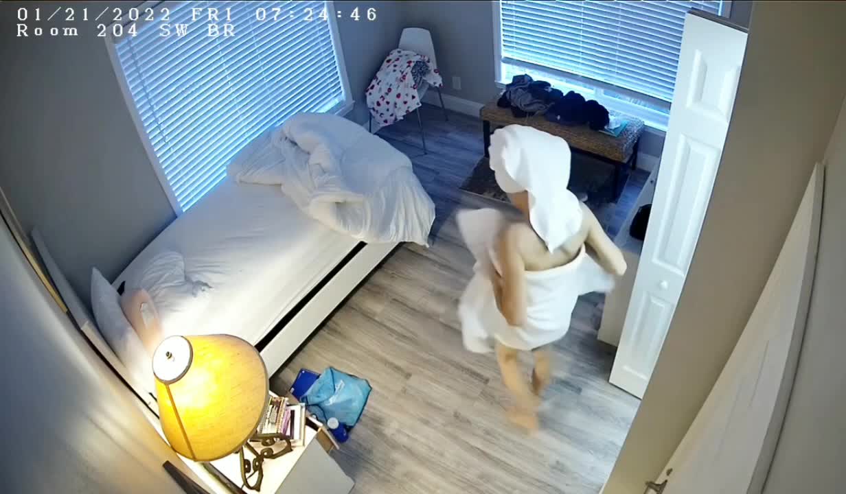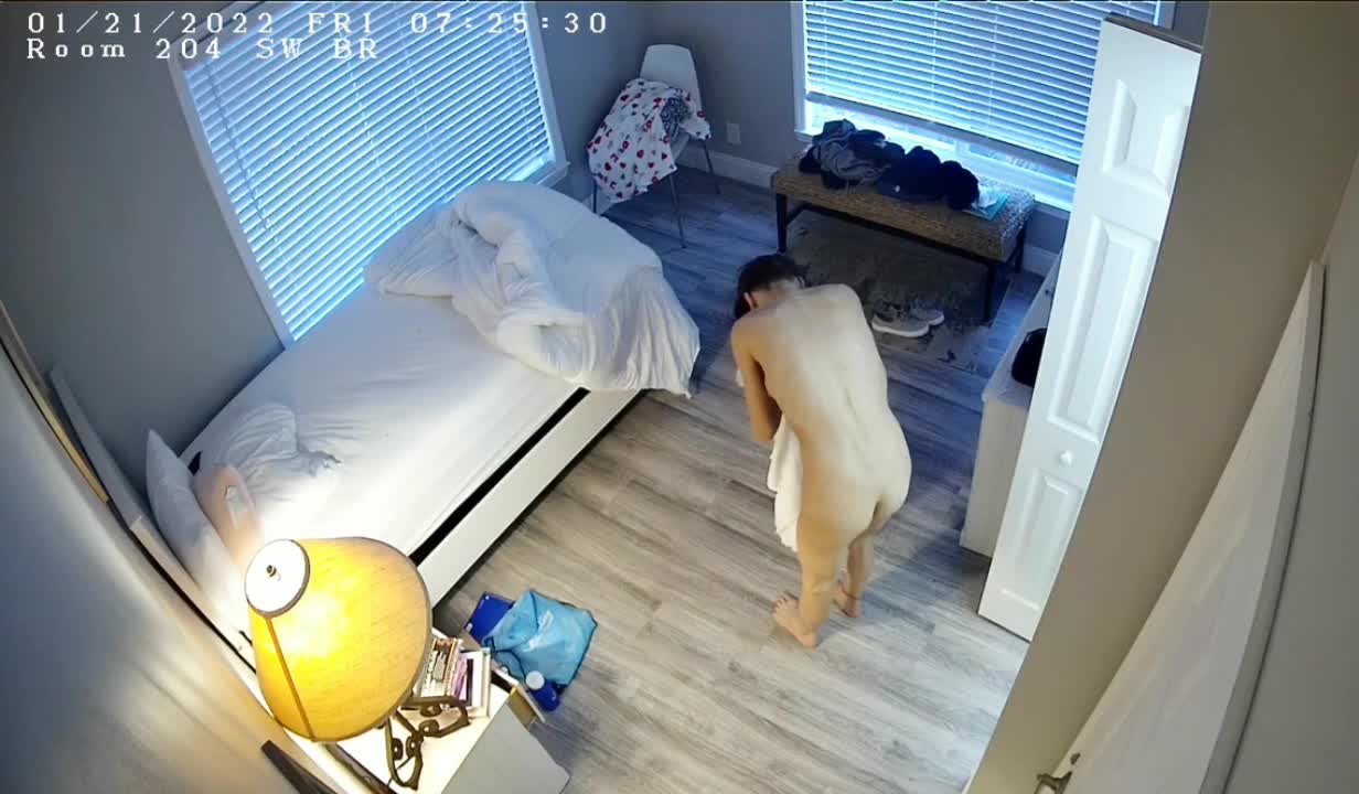 Зачётно подпалили эту молодую стройняшку одевающуюся после принятия душа!