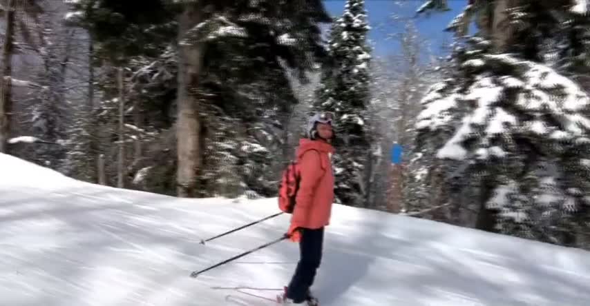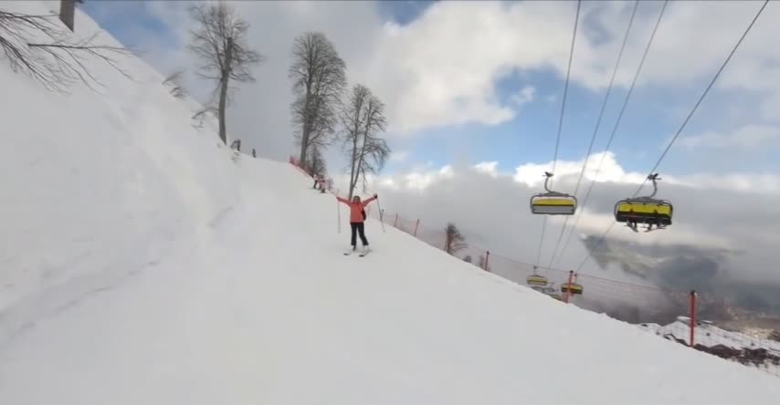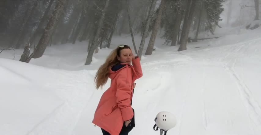 Анютка отрывается на горнолыжном курорте Шерегеш. Сиськи на лыжах красиво смотрятся.