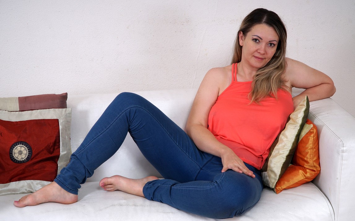 Домохозяйка Анастасия очаровательна в своём небольшом домашнем стриптизе!