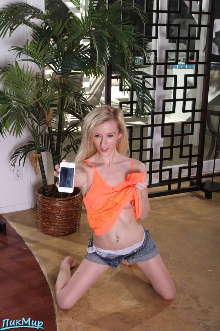 Худенькая блондинка разделась и показала свое красивое тело и киску