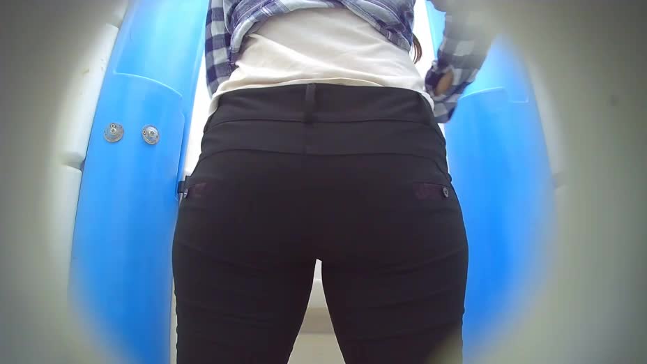 Девушка с симпотичной попкой писает в биотуалете.