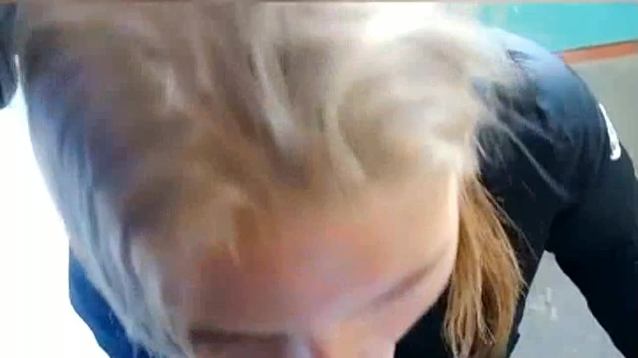 Любя сосёт симпатичная девка в подъезде член своего парня!