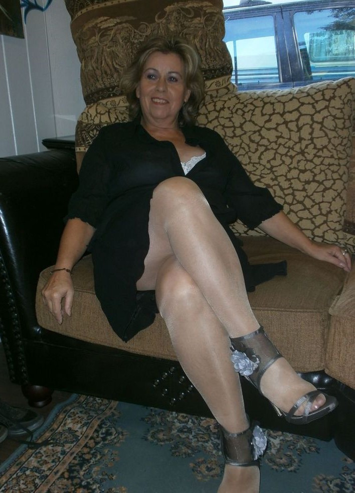 Старушка с большими сиськами стягивает колготки, чтобы трахнуть пальцами свою натуральную киску
