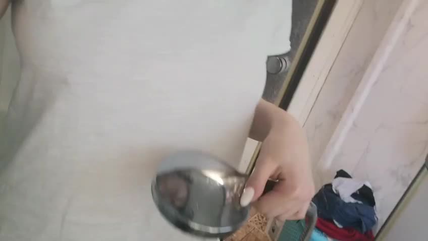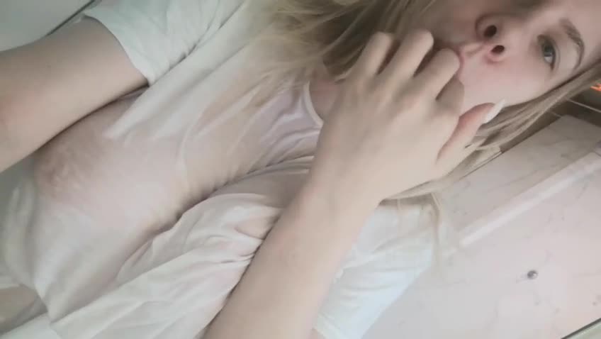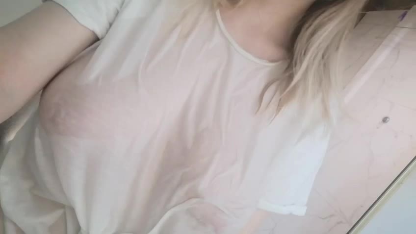 Сисястая молоденькая блондиночка просто очаровательно выглядит в мокрой белой маечке под душем!