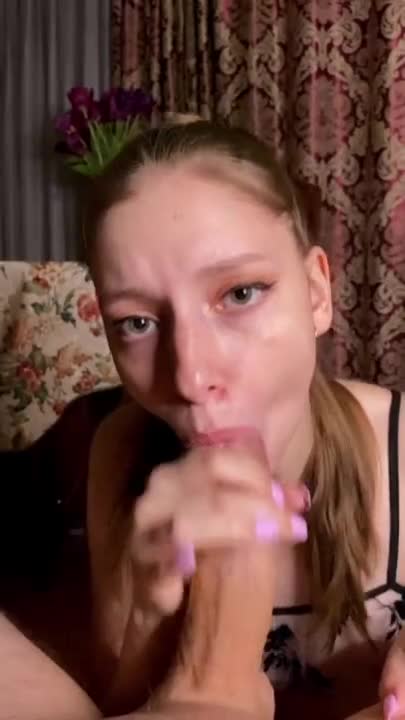 Она так сильно влюблена в его член, что прямо оторваться от него не может!