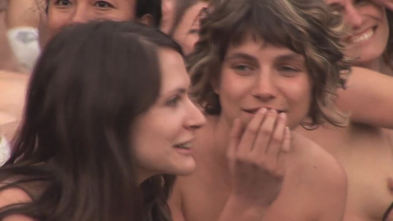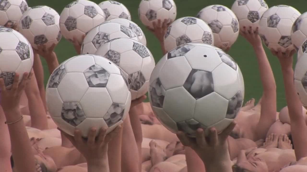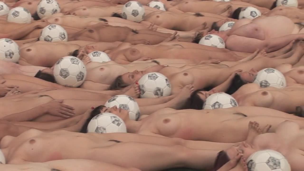 Австрийский фотограф устроил фотосессию с сотнями обнаженных женщин на футбольном стадионе на радость зрителям на трибунах.