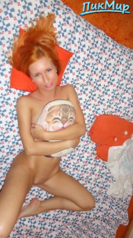 Прекрасны дырочки у этой голой рыжей бестии на постели позирующей!