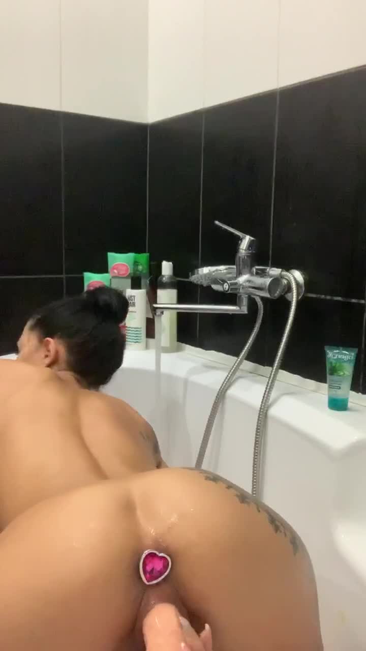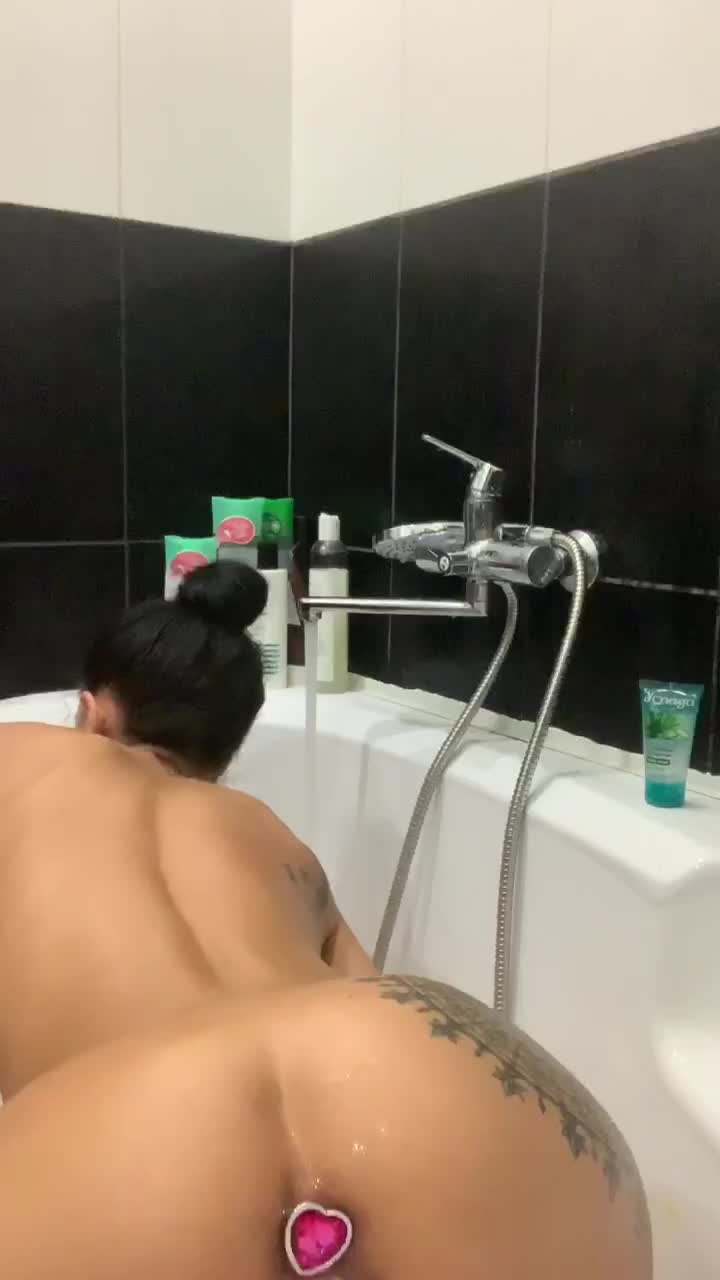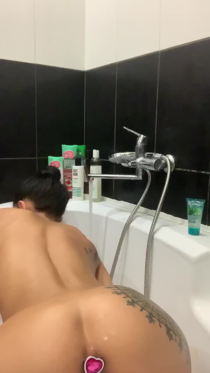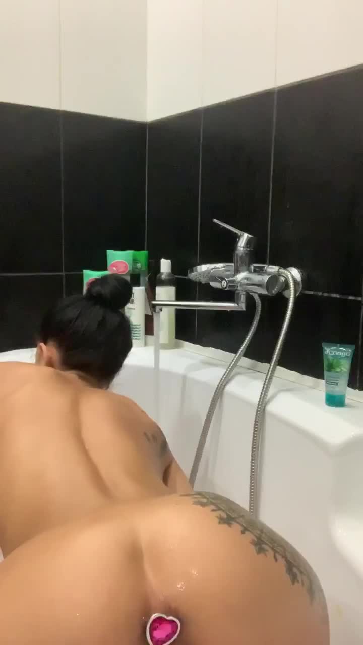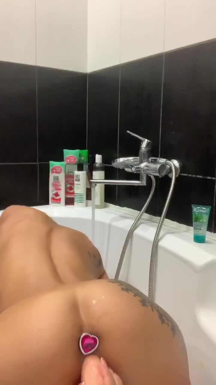 Эта анальная пробка видимо усиливает ей кайф от мастурбации пиздёнки фаллосом.