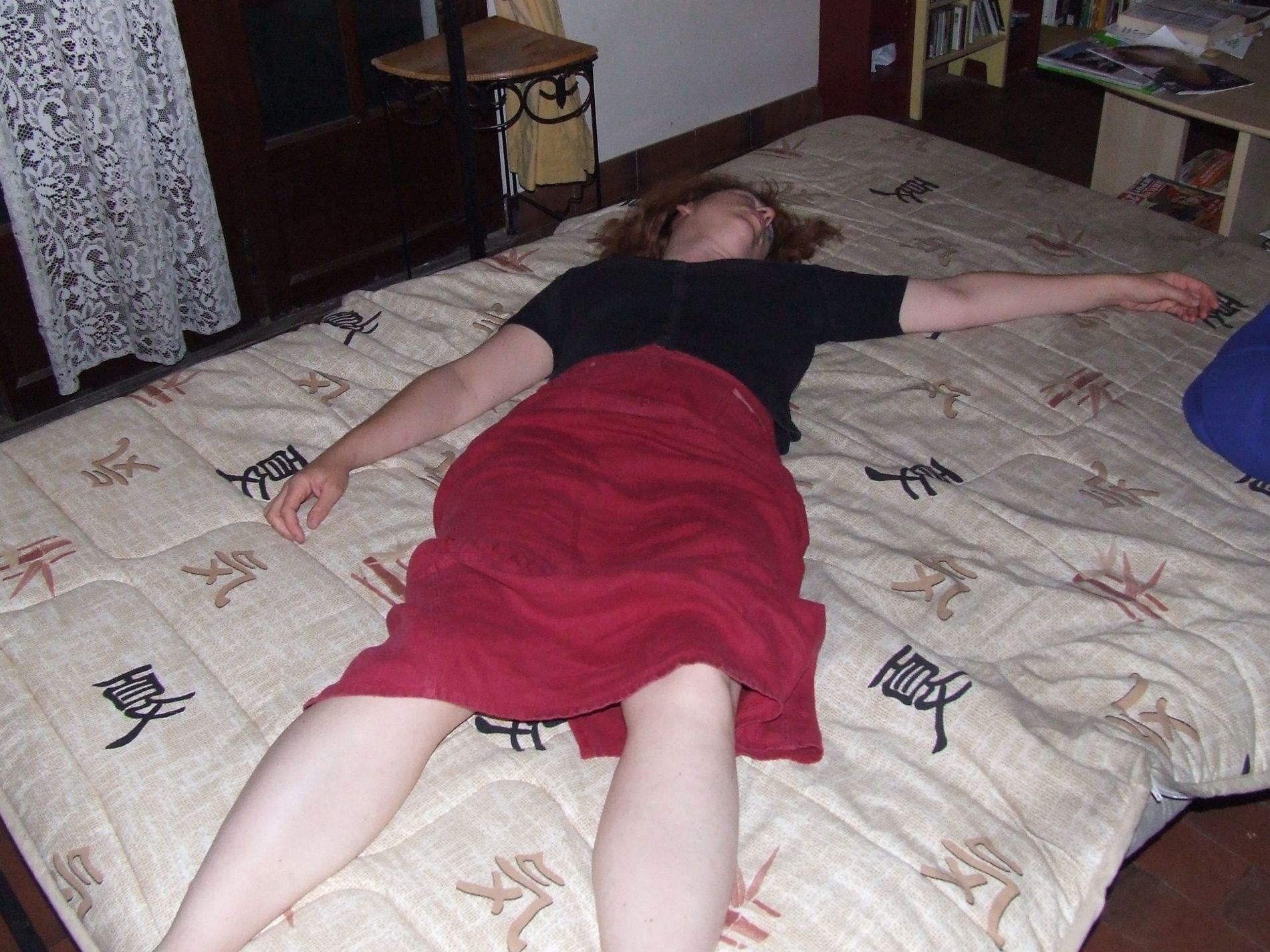 В общем история такова, с чьей-то днюхи жена вернулась на такси домой, дошагала до своей квартиры на "автопилоте" и рухнула на диван, оставив мужа на ночь без секса. Но муж у неё тот ещё тип! Взял свой смартфон, включил камеру и давай фоткать. После чего выложил эту фотосессию в Сеть.