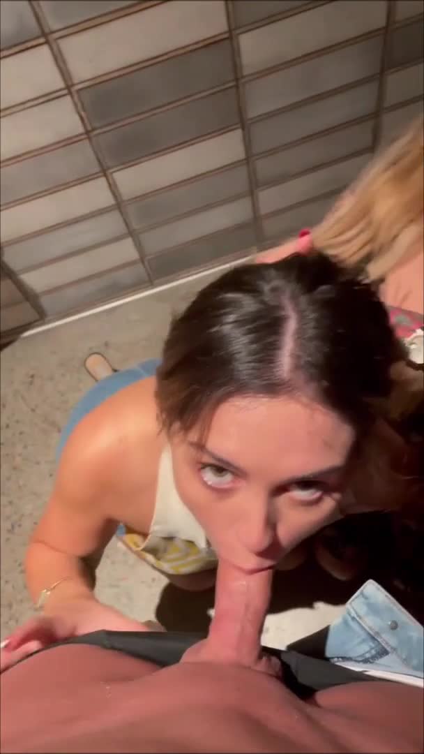 Активно и страстно Кира с подружкой ласкают член очередной своей жертвы в туалете ресторана!