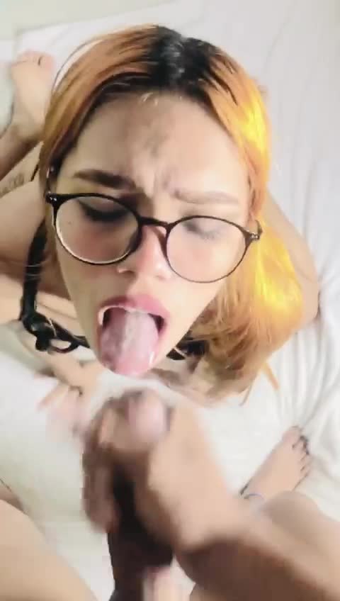Получила заряд спермы в лицо. Очки для безопасности не помешают! ;)