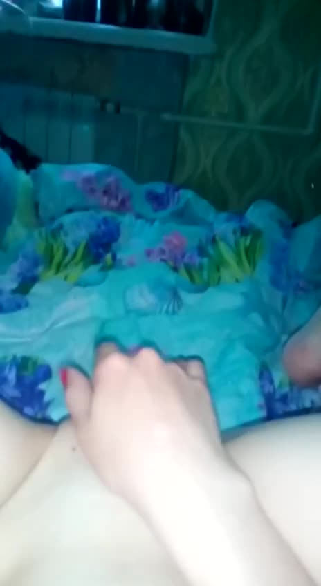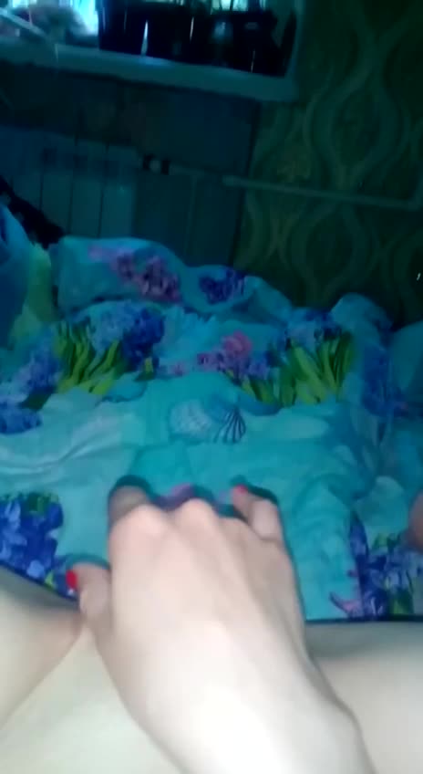 Возбуждающе стройняшка пальчиками со своей вульвочкой играет нежась в постели!