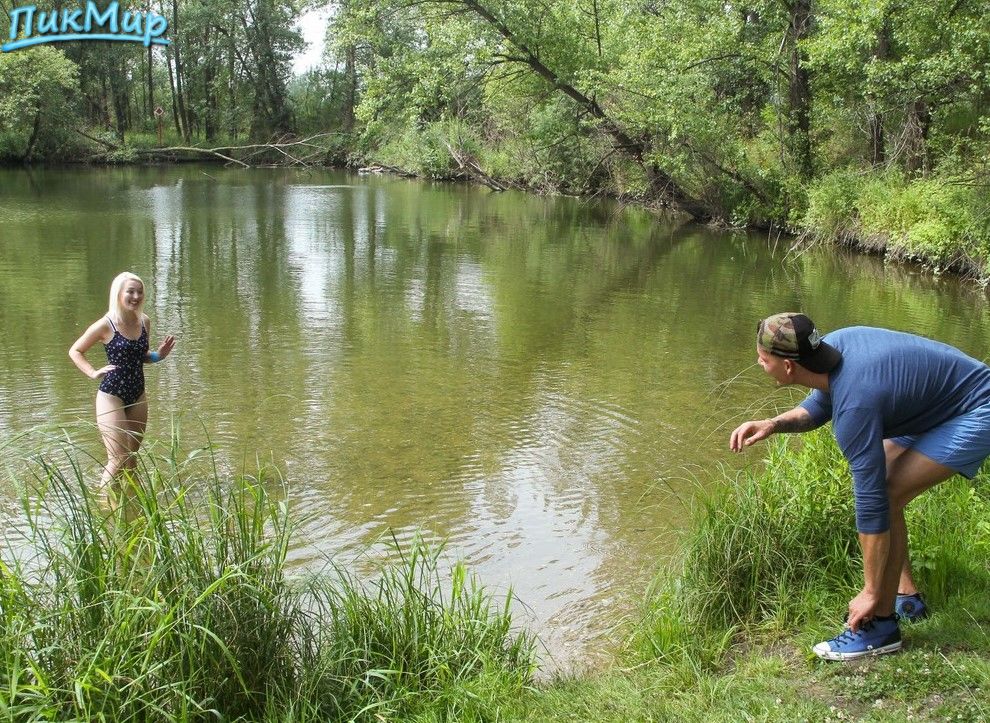 Пришел я с девушкой на озеро. Отпустил её купаться. А тут наш общий друг подошёл. Попозировала мне.