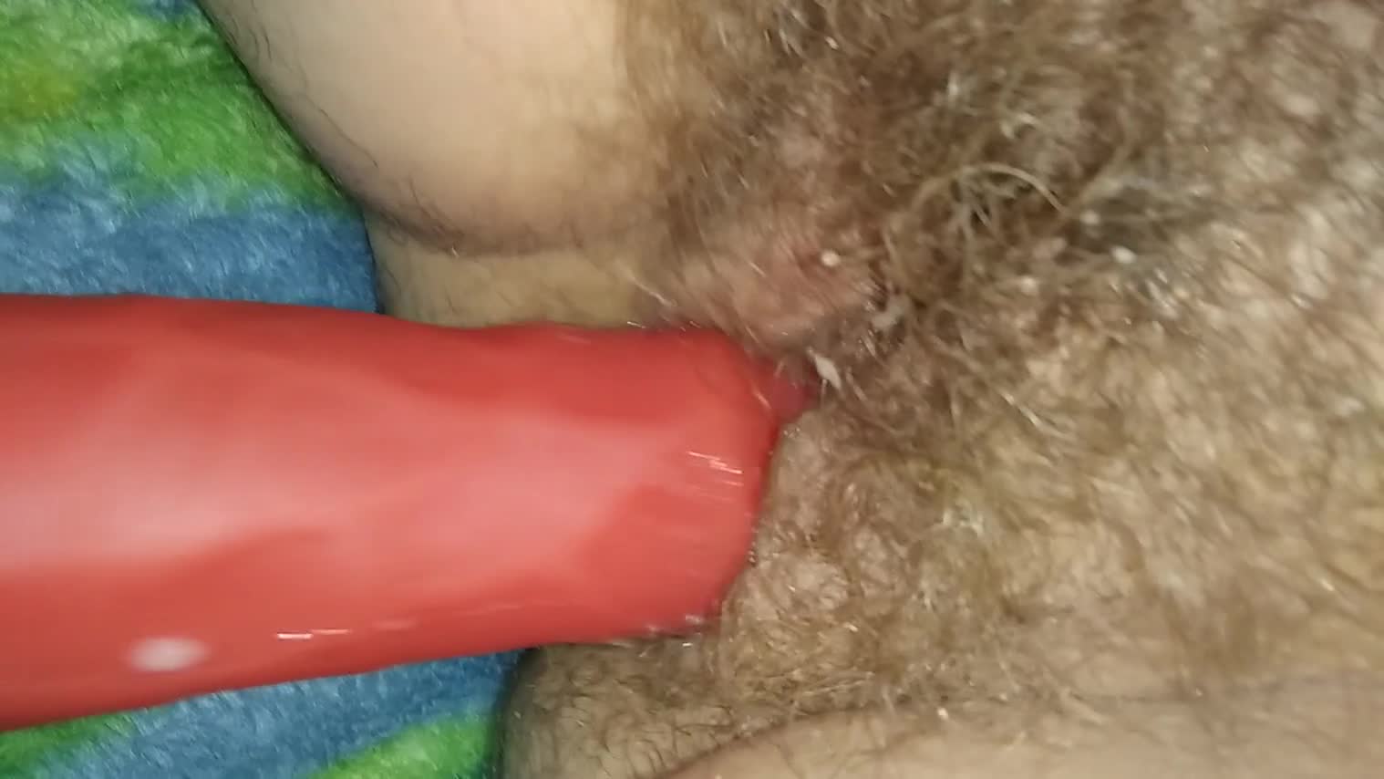 Его жена совсем не против съёмки во время траха ее мохнатой письки самотыком!