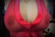 Клёвые ареолы у сосков на сиськах этой сексуальной женщины просвечивающие сквозь её розовое платье!