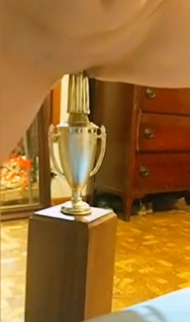 Стоит в доме кубок.Муж решил что жена должна сесть на него пизденкой. Сделано, она садится на него, а муж снимает.