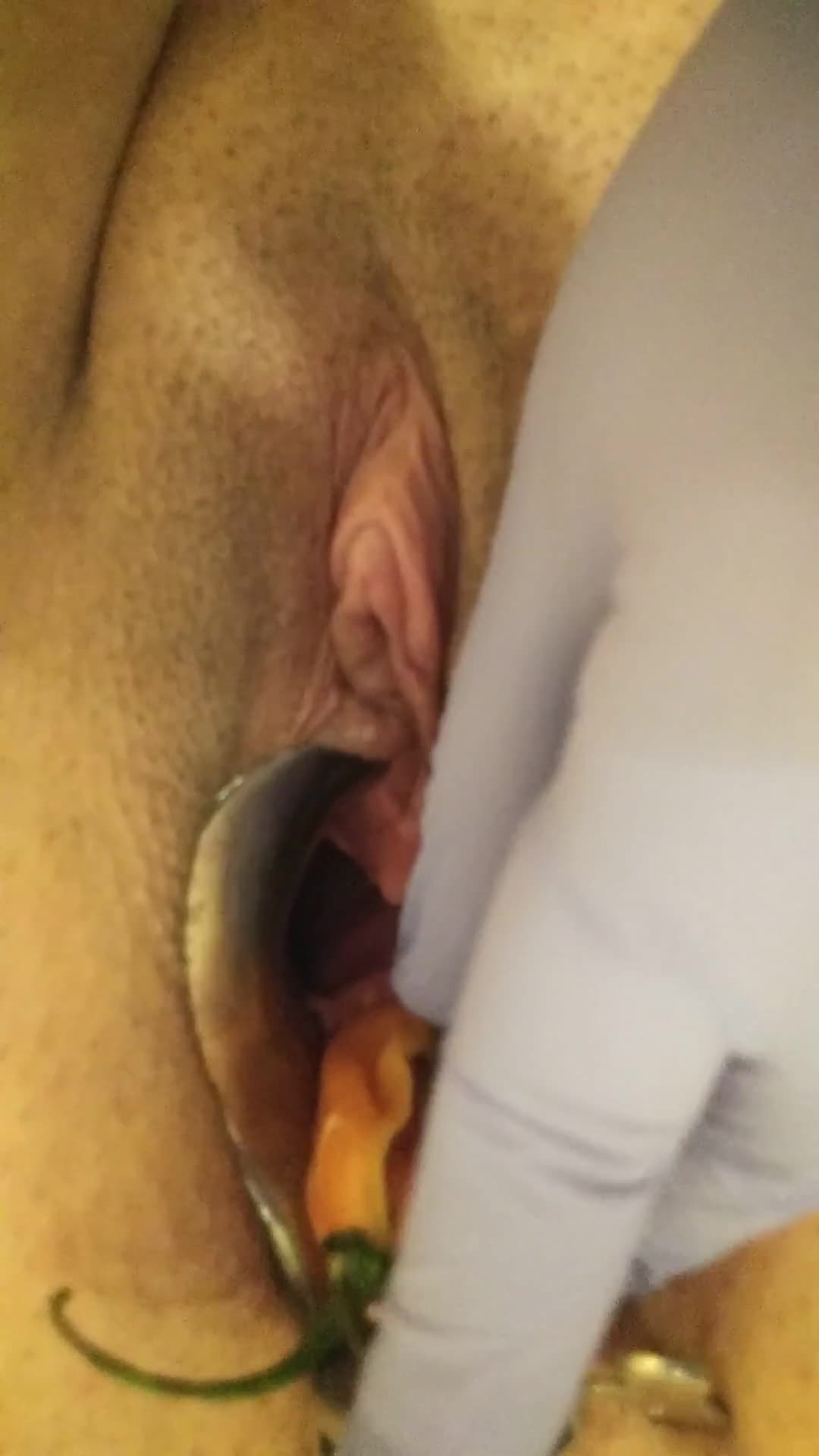 Раскрыла свою пиздёнку и трахнула игрушкой уретру