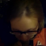 девочка в очках правильно сосёт член парня высовывая свой язык