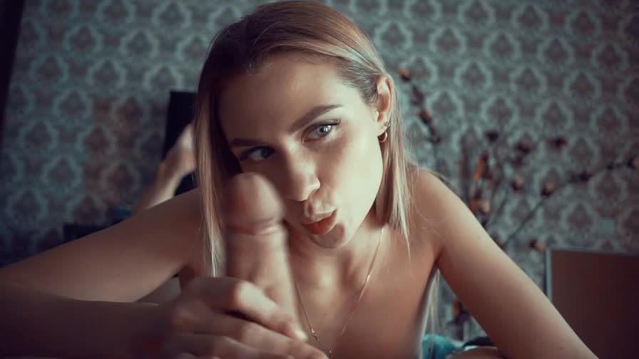 Крендель лежит на кровати и снимает на телефон, как его подружка играется с членом и делает минет.