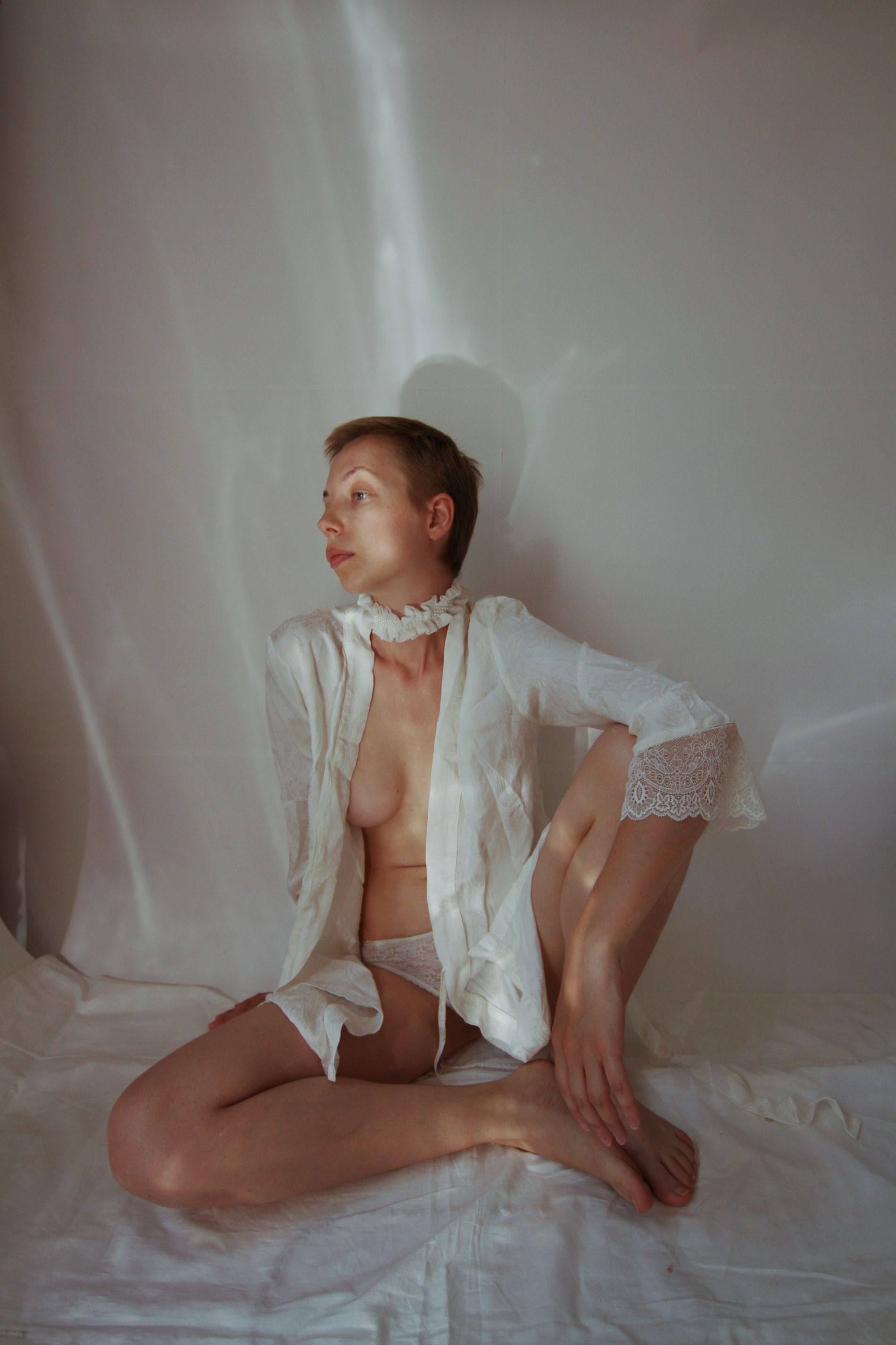 Девушка с короткой стрижкой в художественной эротической фотосессии