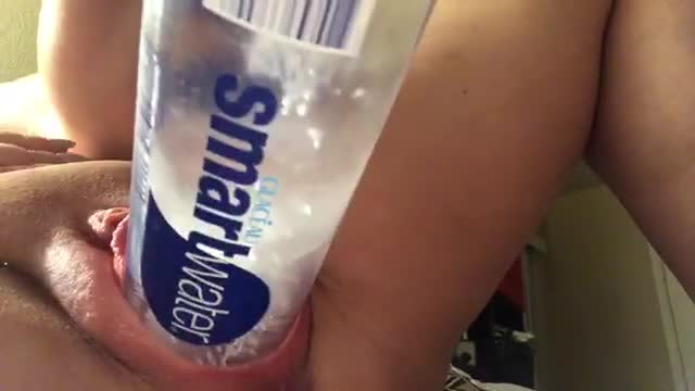девка дрюкает свою пизду стеклянной бутылкой и вибратором клитор