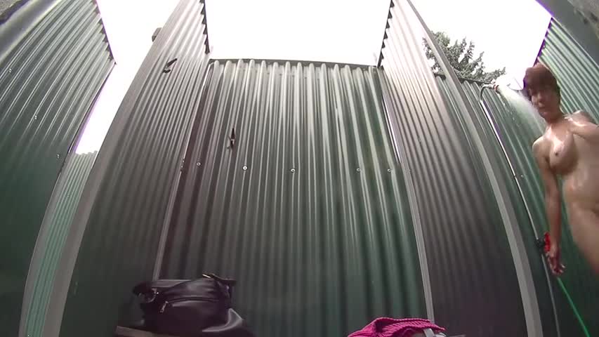 Женщина в возрасте попалась на скрытую камеру в душевой на пляже!