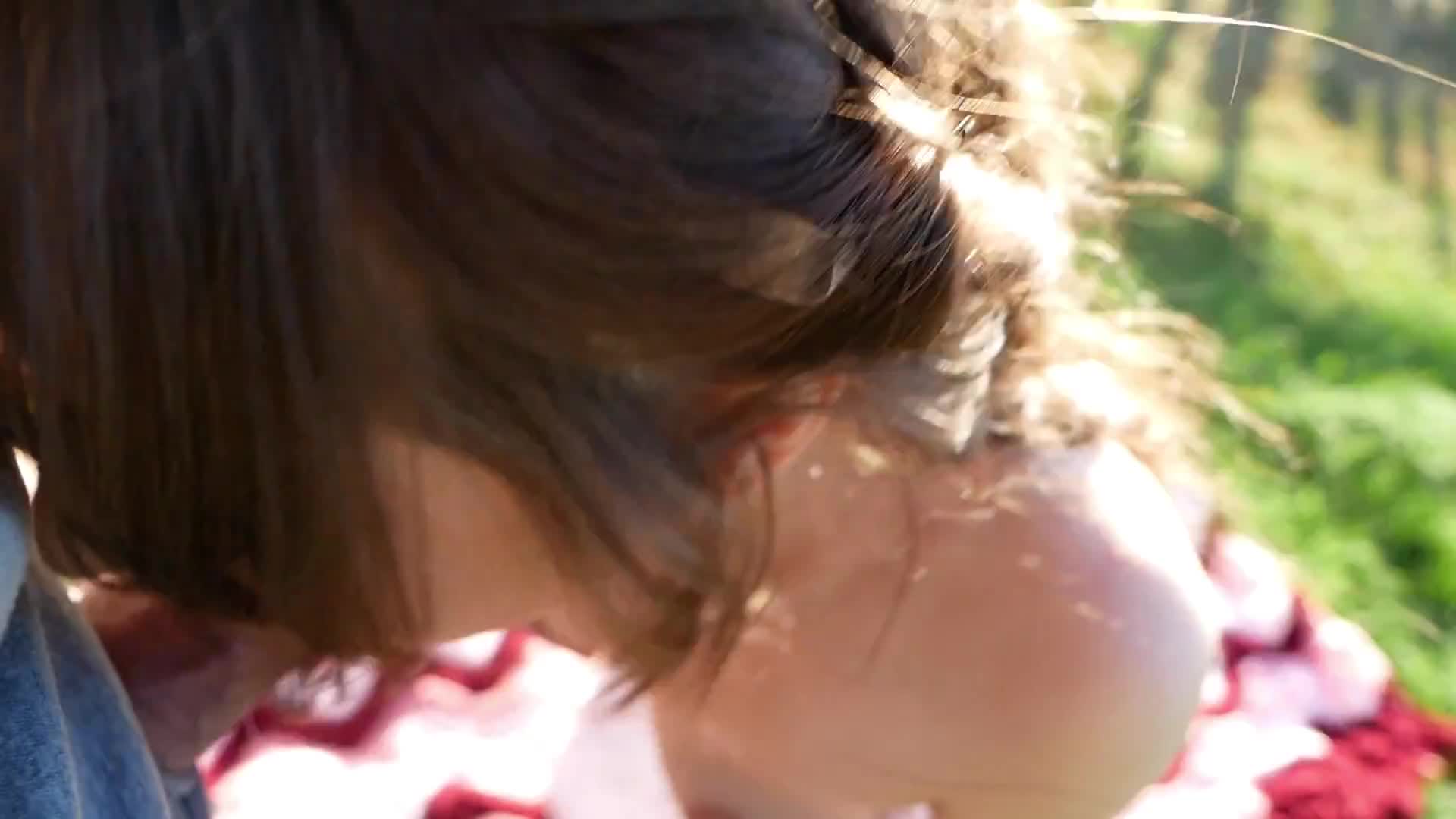 Красивая брюнеточка отсасывает своему любовнику прямо на улице и получает сперму в ротик