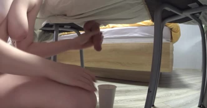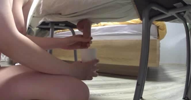 Шлюшка подоила член мужика и отхлебнула из стакана