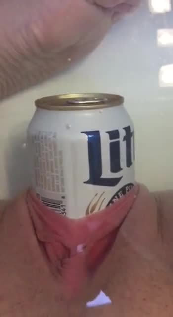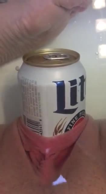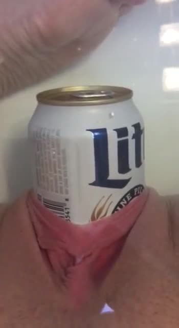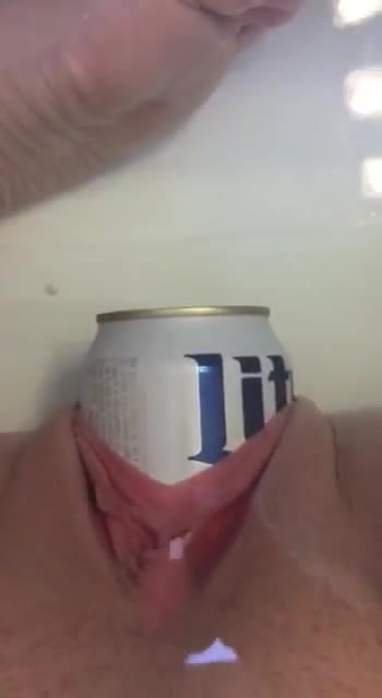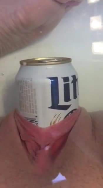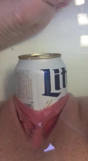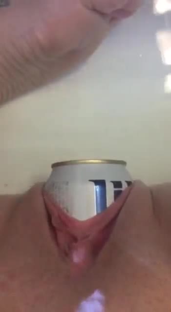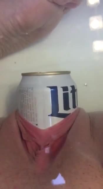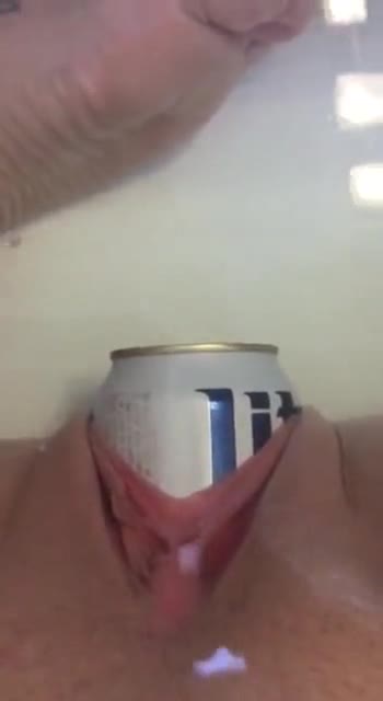 девушка лёжа в воде в ванной медленно выталкивает пивную банку из своего влагалища