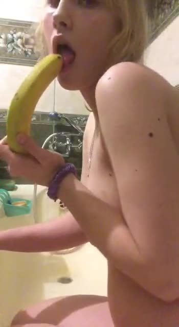 Молодая девка в ванной засовывает в свою влажную дырку банан