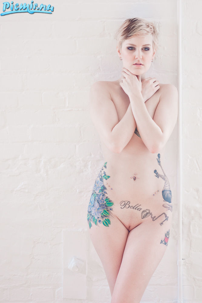 Эротические фотосессии девушку с красивыми татуировками и пирсингом.