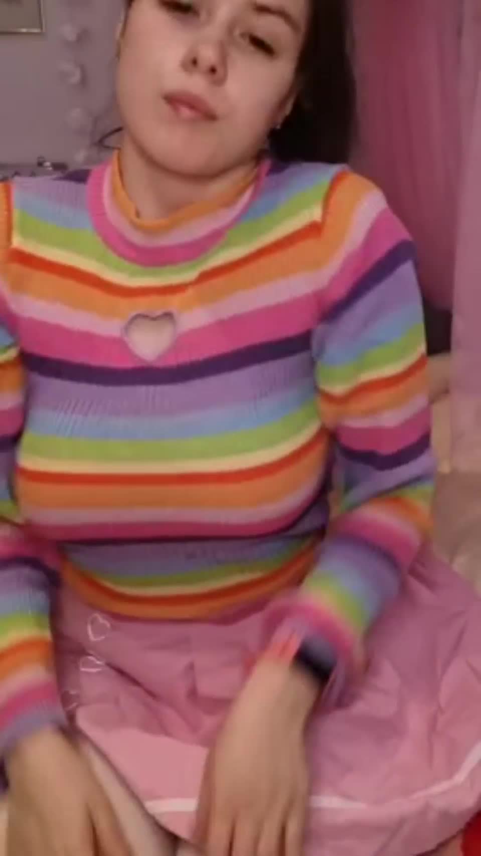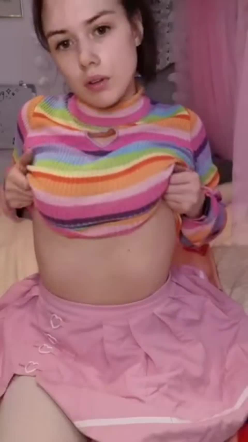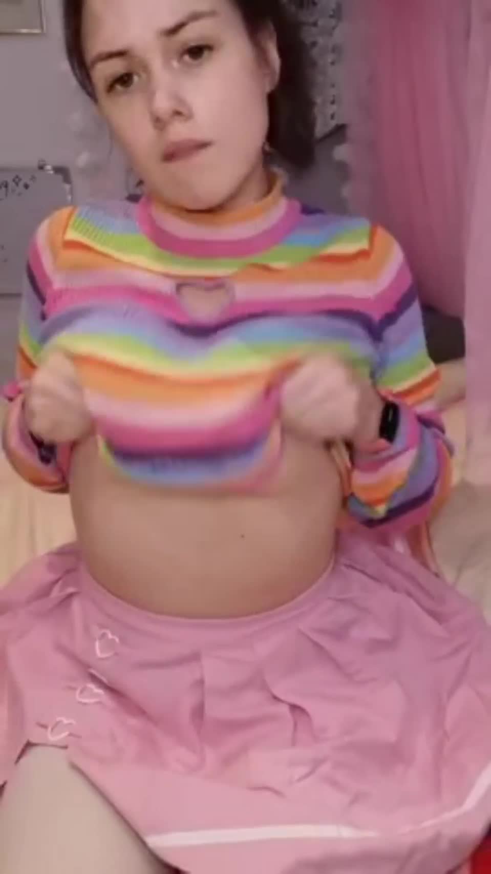 Девушка на камеру показывает свою пышную грудь и дырочки