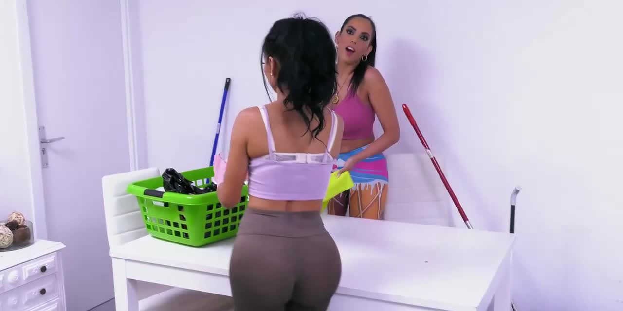 Парень вызвал двух латинок для уборки дома девушки пришли в эротичном наряде и парень возбудился и за доплату сначала раздел их а потом поимел их обоих