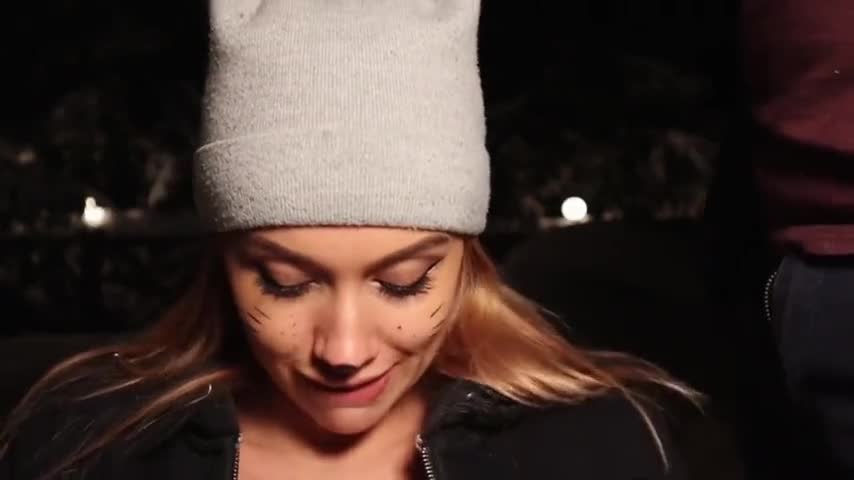 киска сосёт конфетку на морозе ч1