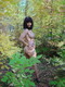 Молодая , стройная , грудастая и с хорошей фигуркой позирует на фоне увядающей осеней листвы