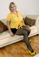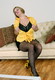 Зрелая женщина в желтом играет со cвоими сиськами