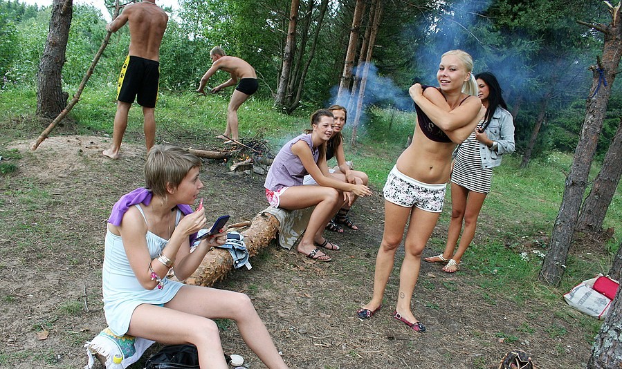 Студенты колледжа занимаются групповым сексом во время тусовки у реки