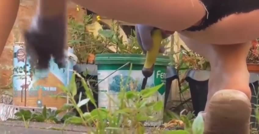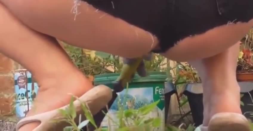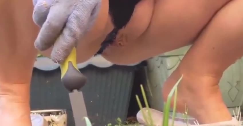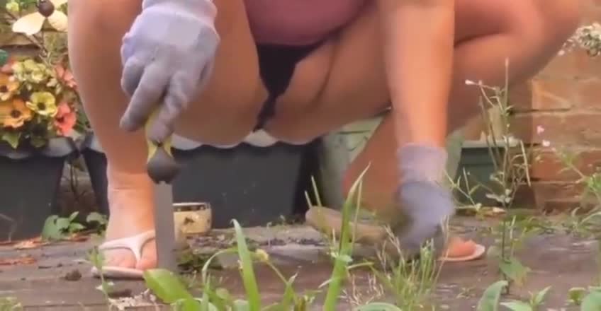 А есть дамочки вообще работают на даче без трусов. Но тут надо иметь хороший объектив. Чтобы такие моменты издали отлично снять.